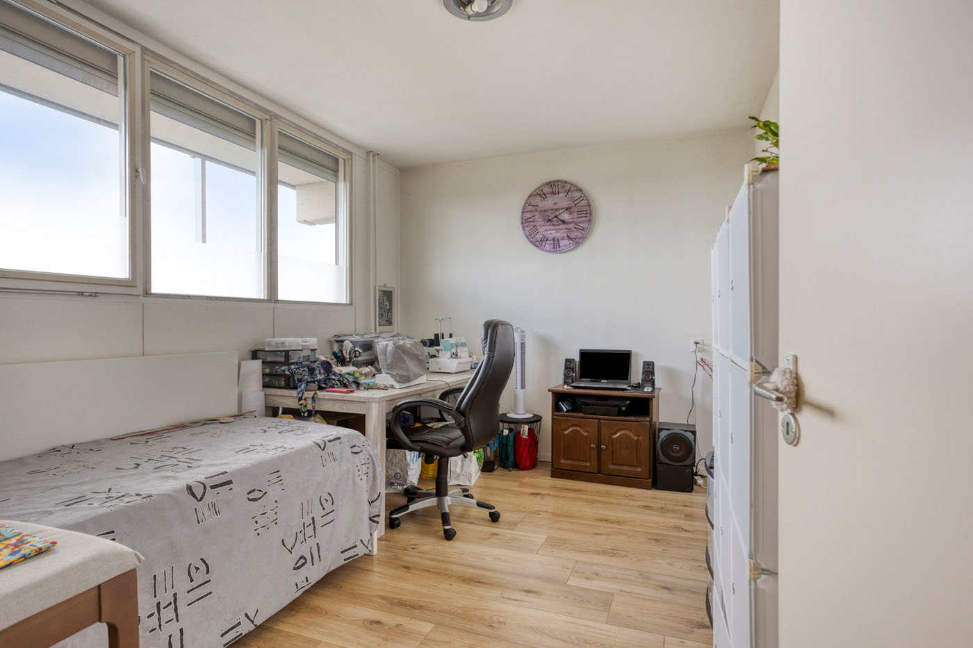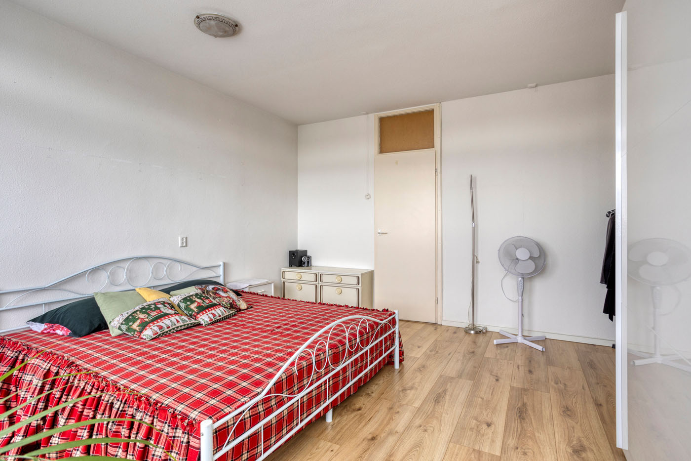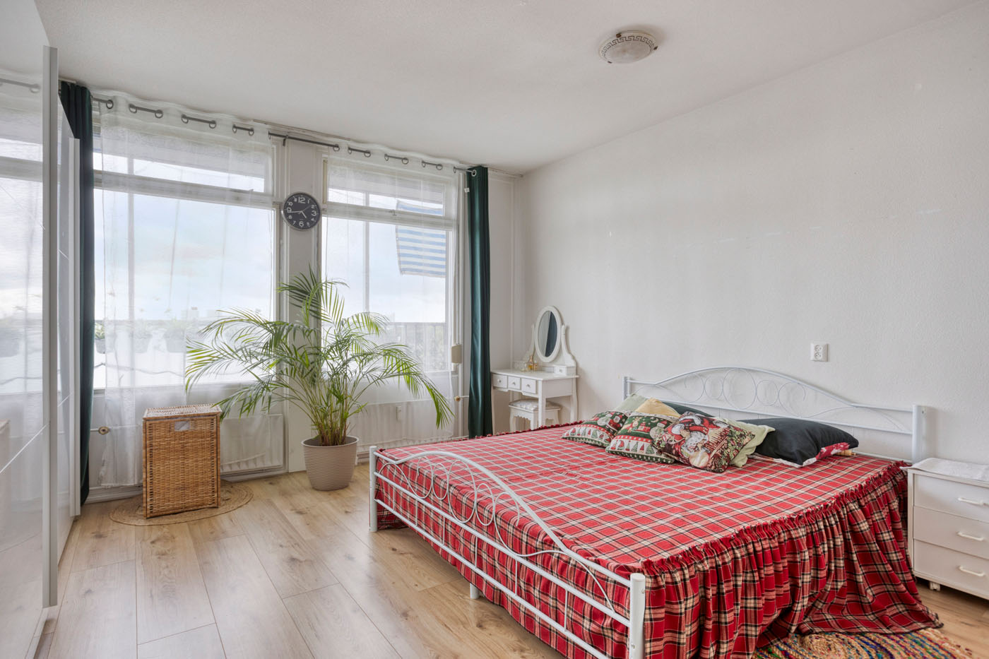 • Master bedroom (ca. 4,69 x 4,11 m): een ruime kamer met laminaatvloer, grote ramen en uitzicht richting het balkon, eveneens uitgerust met een rolluik.
