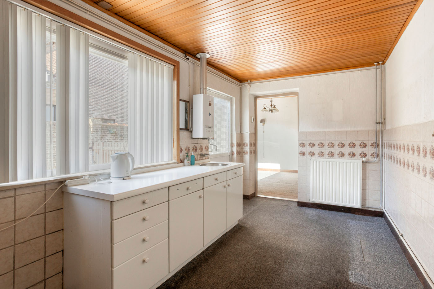 De keuken is eenvoudig uitgevoerd met keukenblok en wasbak en voorzien van warm water via een geiser. Authentieke details zoals de decoratieve tegeltjes en houten plafonds geven ook hier karakter. Vanuit de keuken bereik je de eenvoudige badkamer met douche, wastafel en toilet.