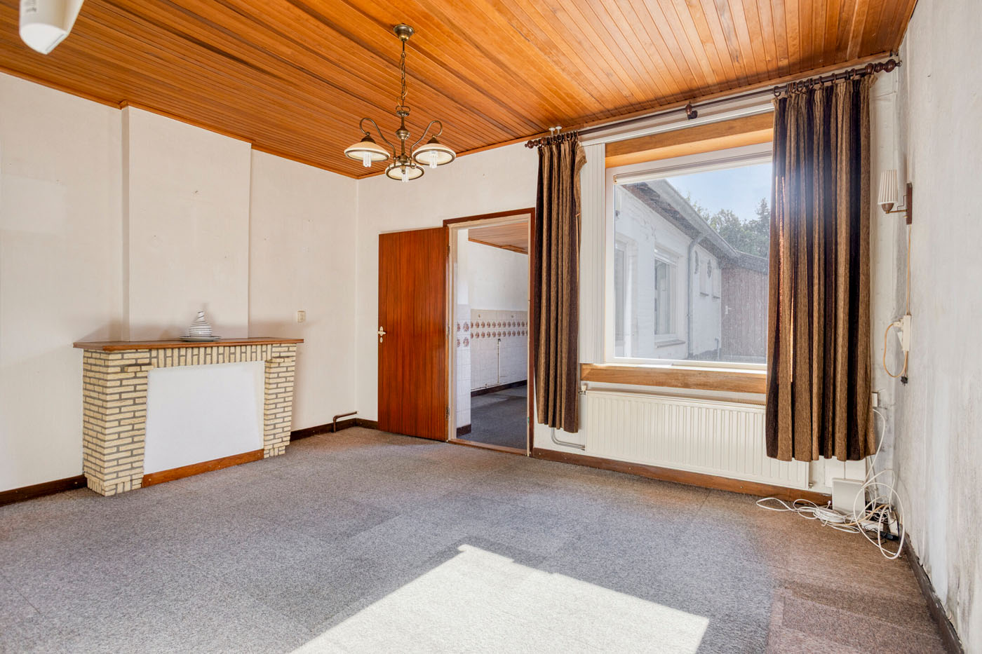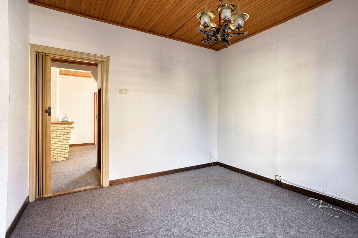 Via de hal met tegelvloer en lambrisering valt direct de jaren ’30 sfeer op, met sierlijsten en een decoratieve boog. De woonkamer bestaat uit twee kamers, gescheiden door een harmonicadeur. De voor- en achterkamer zijn voorzien van tapijttegels, houten plafondafwerking en een open haard.