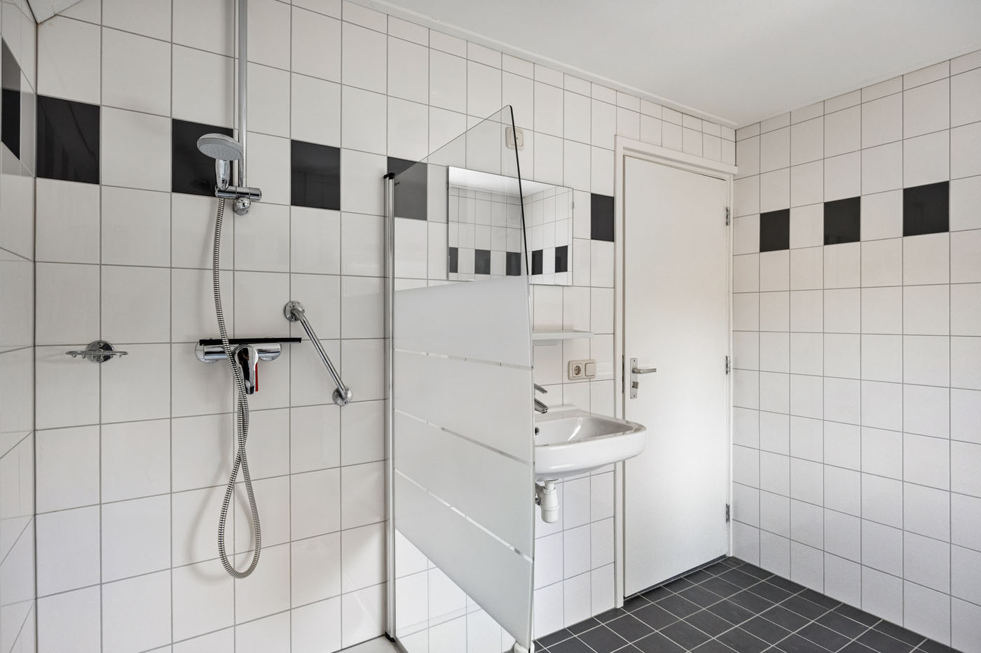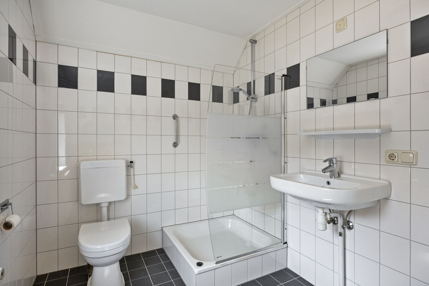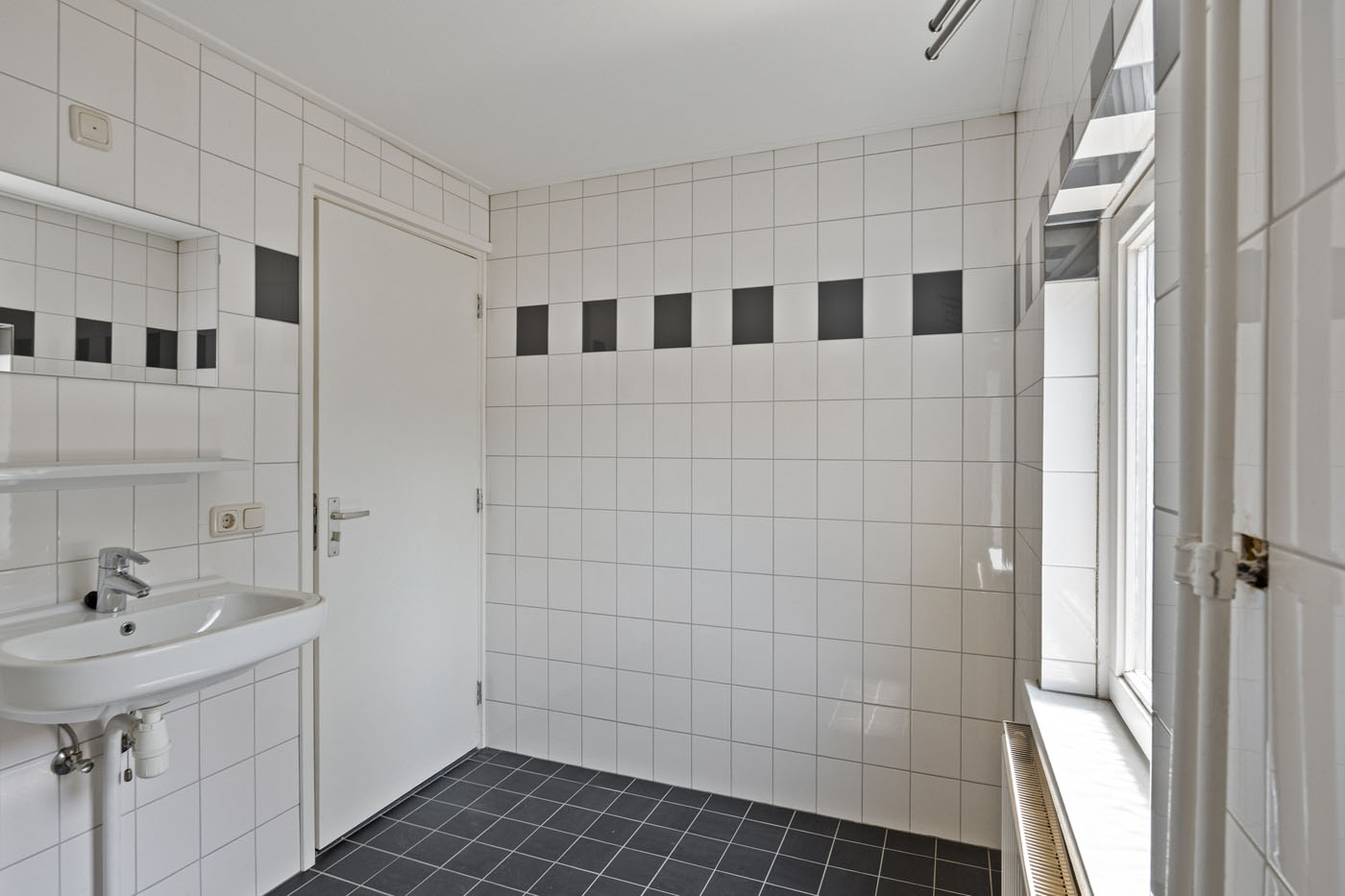 Hier vind je drie slaapkamers, elk met novilon vloer, nette wanden en houten kozijnen met HR++ glas. De badkamer is volledig betegeld en voorzien van douche, wastafel en tweede toilet (duoblok).