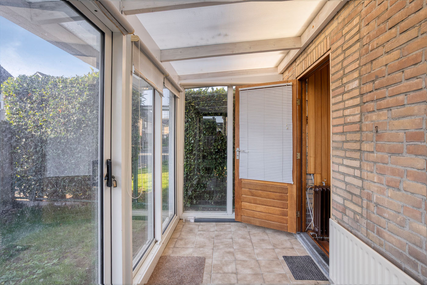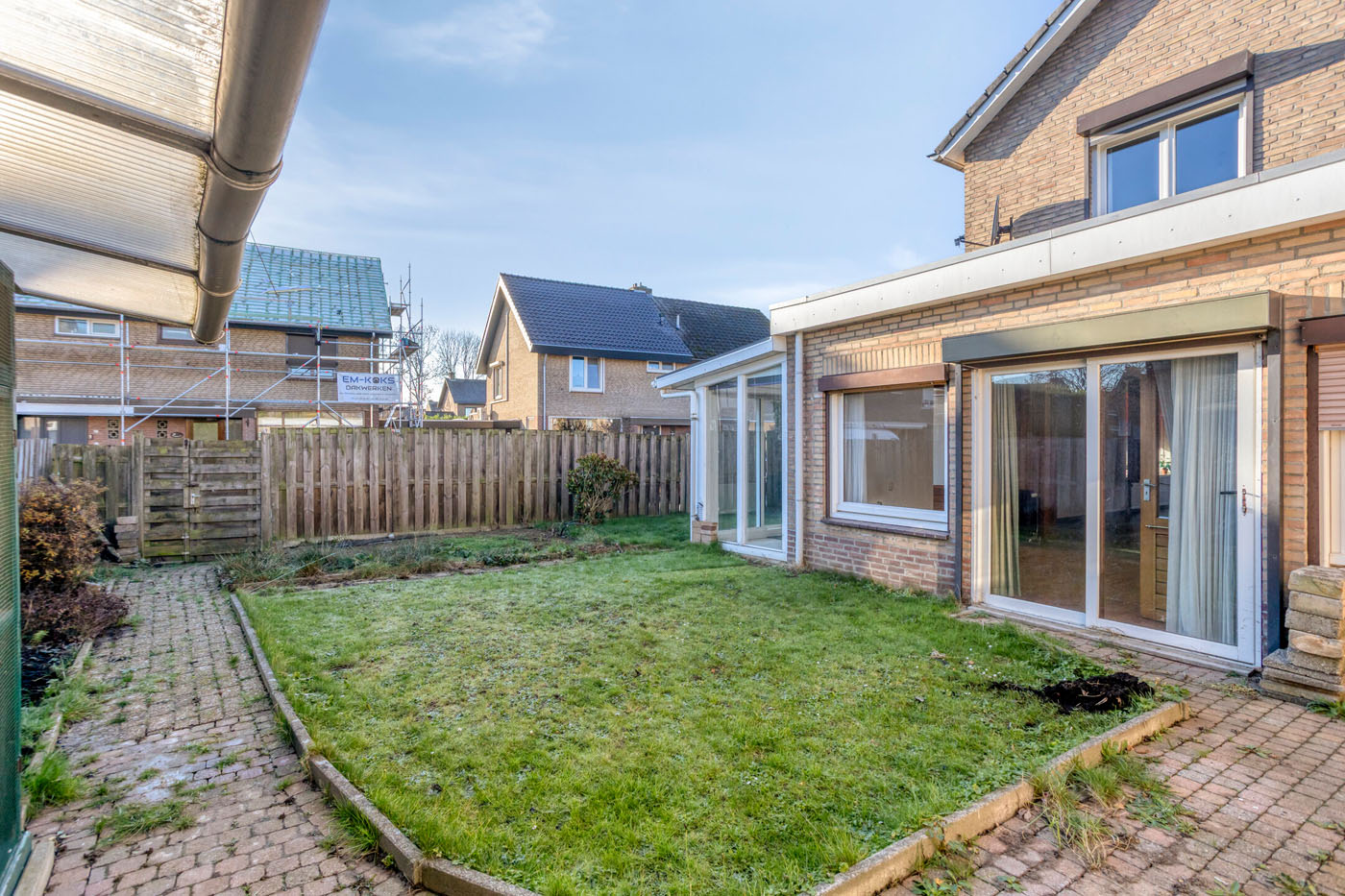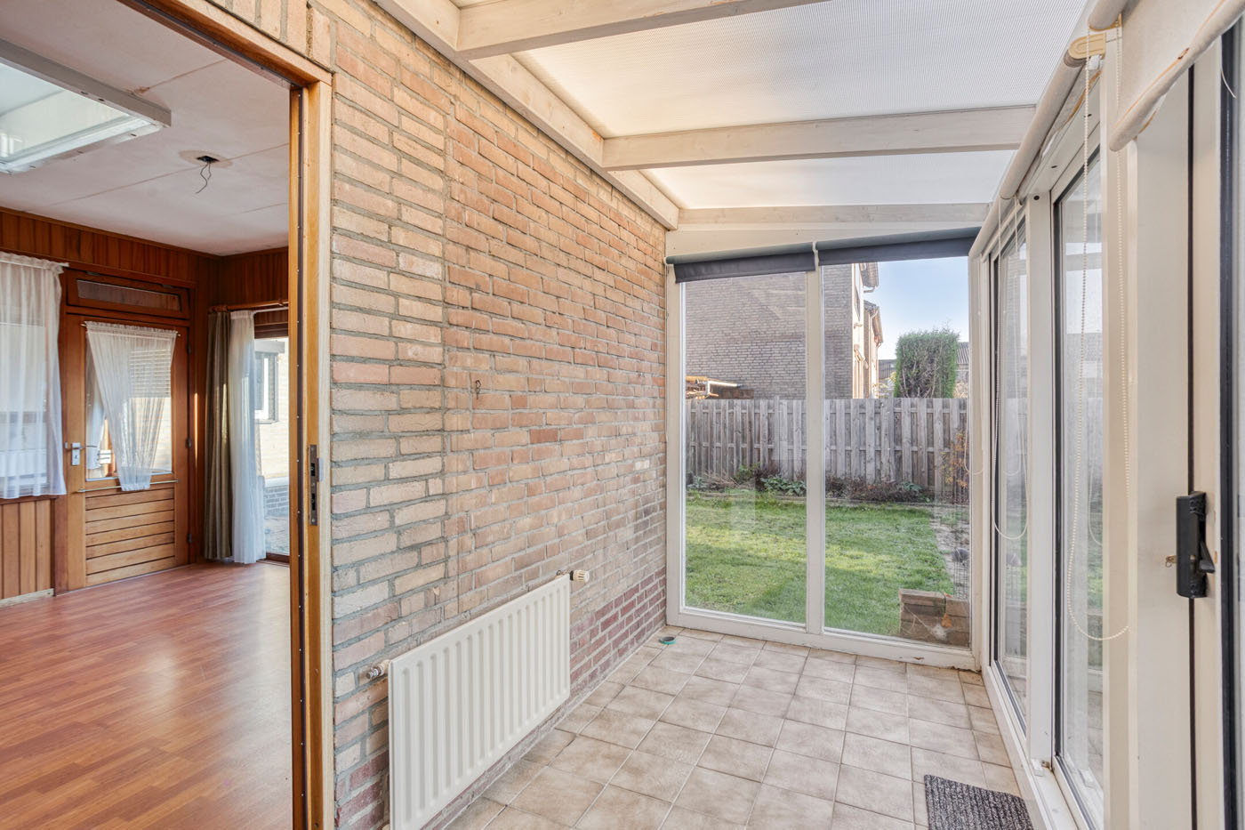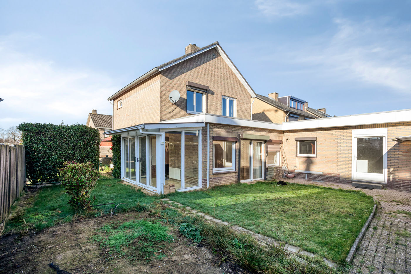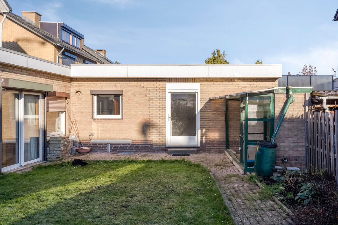 De achtertuin is bereikbaar via de garage, de serre en de schuifpui in de aanbouw. De tuin is gelegen op het oosten en bestaat uit een beklinkerd looppad en een gazon: een fijne basis om naar eigen inzicht verder aan te leggen.