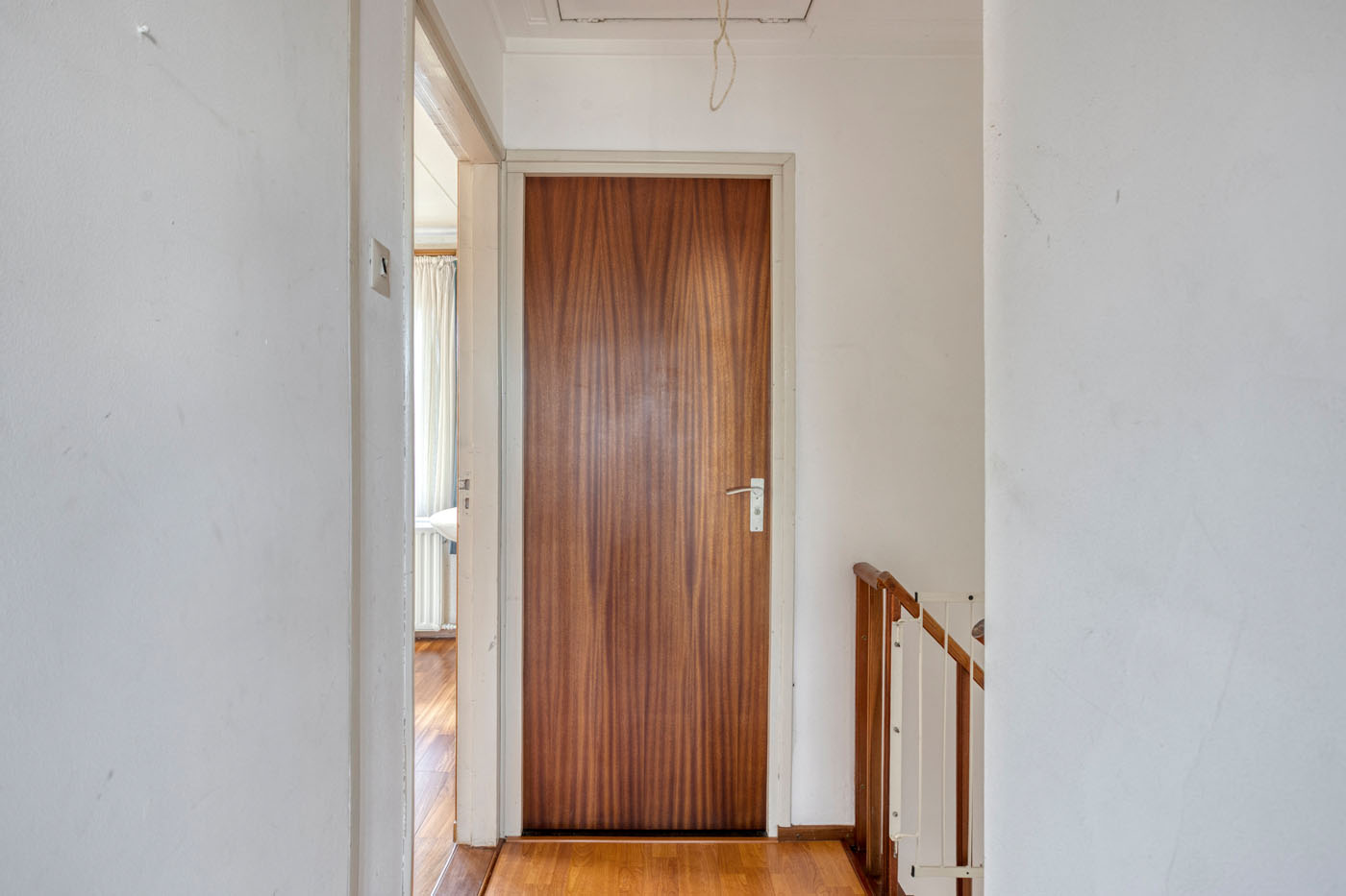 Via een houten trap bereikt u de overloop, die toegang geeft tot twee slaapkamers en de badkamer.