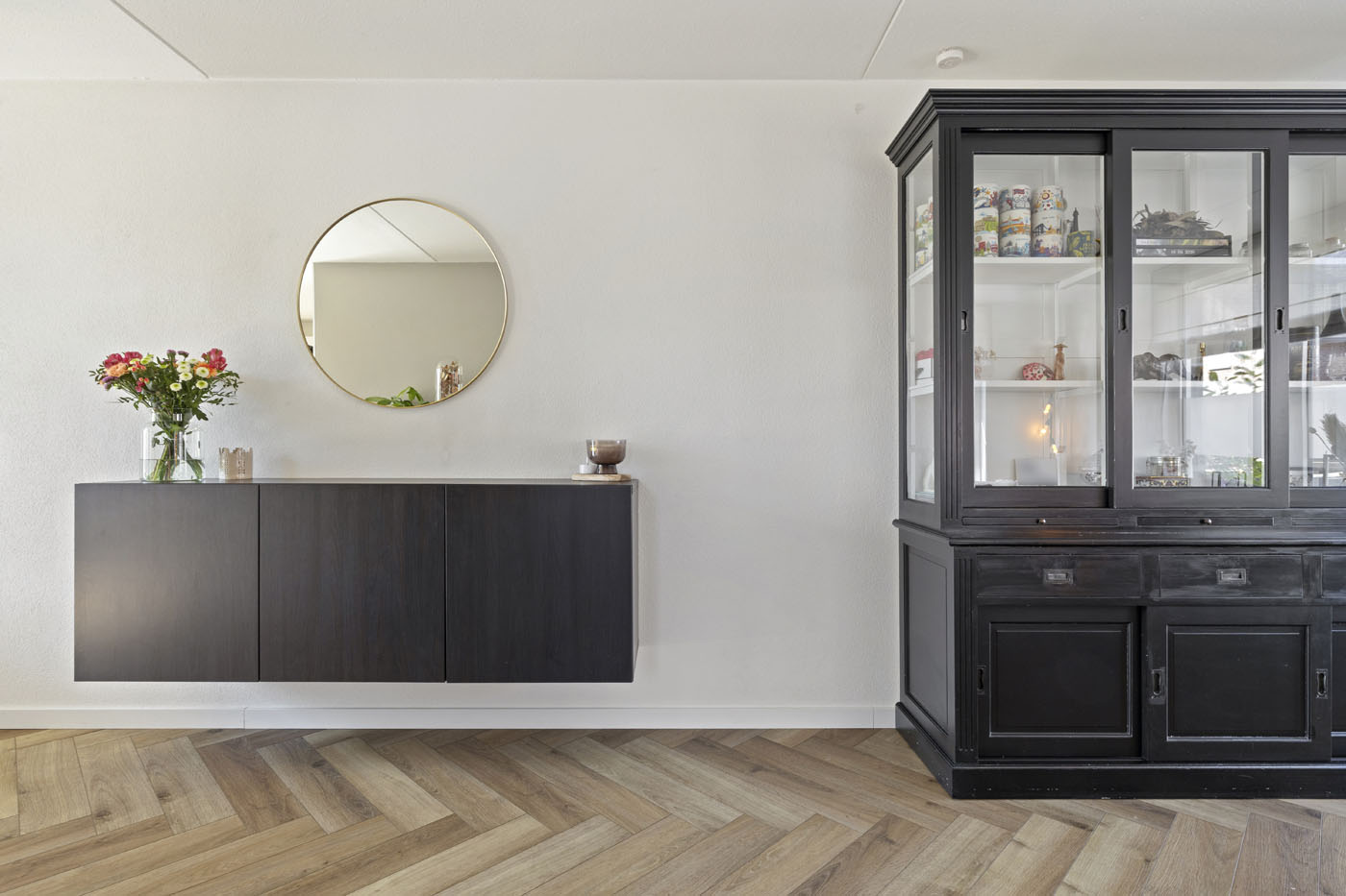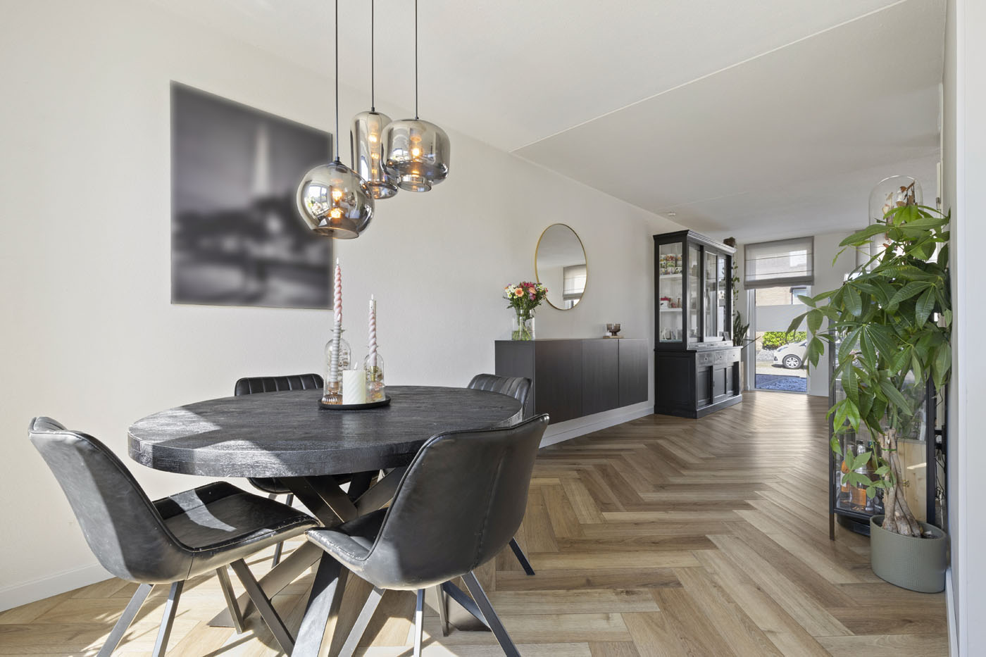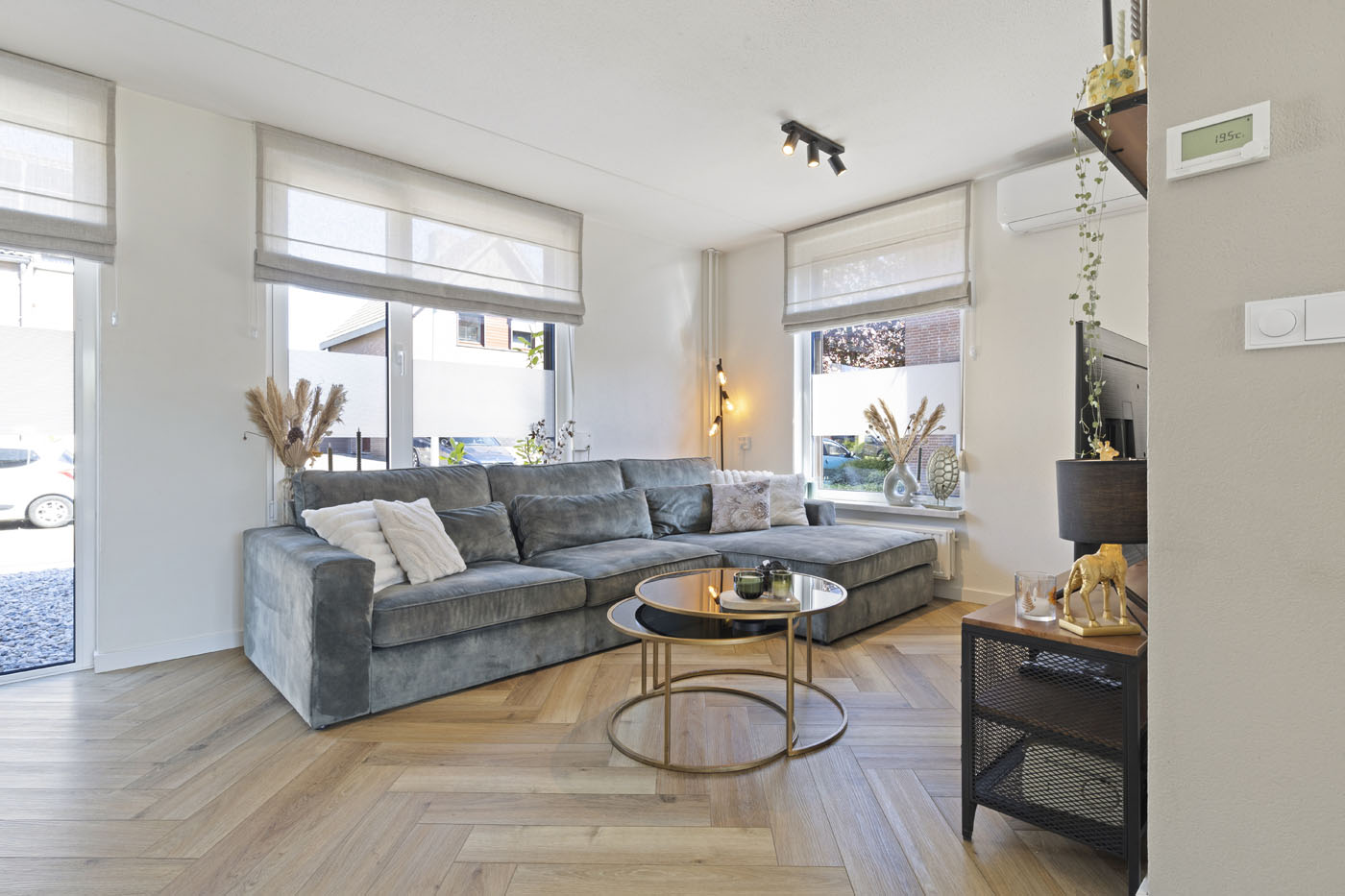 De ruime L-vormige woonkamer is heerlijk licht door de grote raampartijen aan de voor-, zij- en achterzijde. Dit zorgt voor een open en aangename leefruimte. Daarnaast is de woonkamer voorzien van airconditioning, welke zowel kan koelen als verwarmen en daarmee bijdraagt aan optimaal wooncomfort in alle seizoenen.