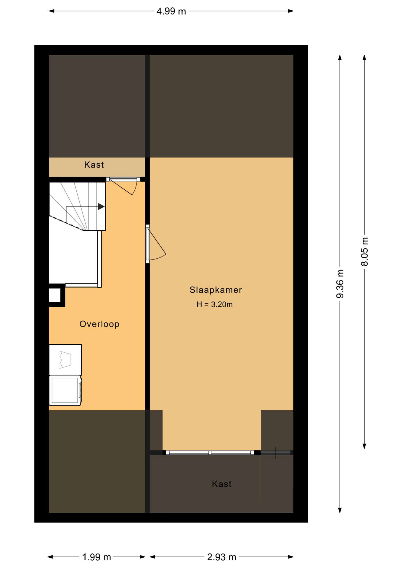 Via een vaste trap bereik je de zolderverdieping. Dankzij de geplaatste dakkapel is hier een volwaardige vierde slaapkamer gerealiseerd. Op de overloop bevinden zich de witgoedaansluitingen en de cv-installatie (Remeha, 2015, eigendom). Tevens is ook hier airconditioning aanwezig. Daarnaast is op deze verdieping de mechanische ventilatie-unit gesitueerd, welke zorgt voor de afzuiging in de keuken, het toilet en de badkamer.